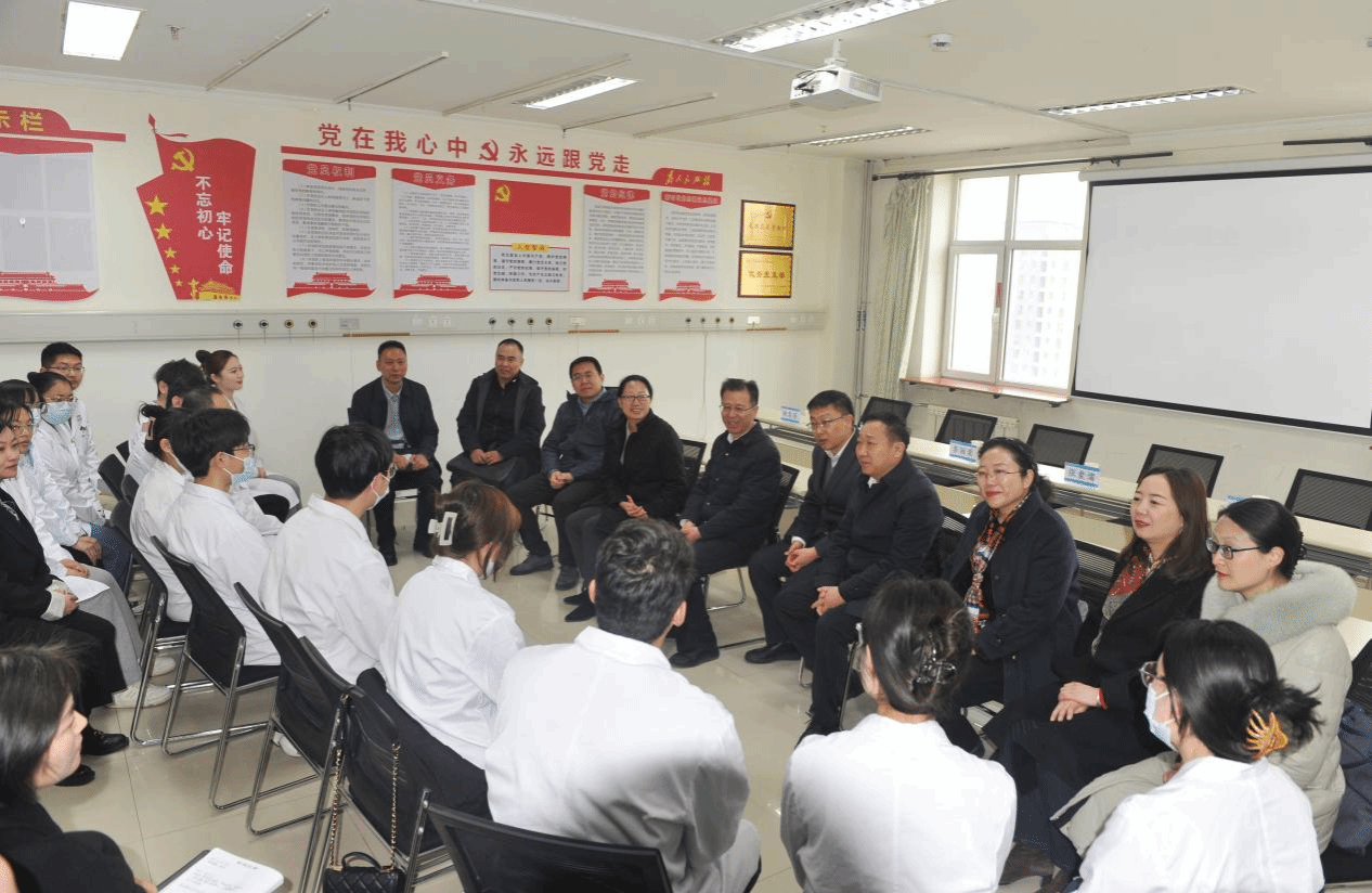 在青海红十字医院,李丽荣书记重点推介2025届优秀医学本硕毕业生,并看望慰问在该院实习的临床医学、护理学等专业的本硕员工,并和员工进行了座谈,针对生活、学习、实习、技能培训、就业等进行了深入交流,李丽荣书记勉励同学们一定要依托红十字医院的良好医疗资源和教学资源,把本领学好、练好,为服务高原群众健康打好能力基础,并号召同学们扎根高原,到群众需要健康守护的地方去。