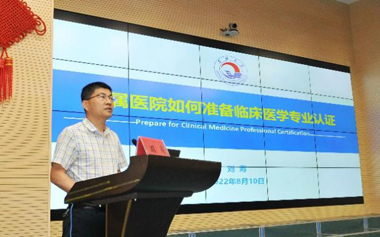 会上,首先王洪书记致辞。他强调:教研室负责人、带教老师作为医院教育事业发展的“主力军”,必须牢牢把握教学质量这条医学教育发展的“生命线”,将临床医学专业认证作为一次检验教学质量、检视教学方法、检查教学水平的良机,从思想上提高认识,在行动上狠抓落实,严格对照认证标准,一项一项抓落实,一条一条找差距,为顺利通过专业认证,切实提升医院教学质量贡献力量。