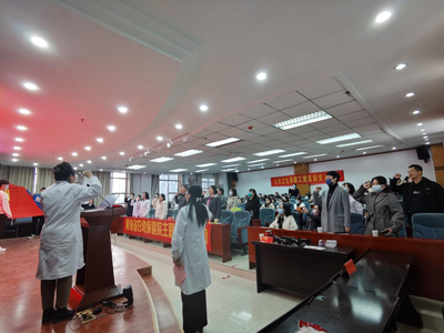 党日活动由系教工支部组织委员刘燕同志主持。活动开始,系党总支书记王兆芬带领全体党员重温入党誓词,党员们以铿锵有力的声音,表达了对党、对教育事业的赤诚之心,展示了新时代党员的良好精神面貌、立德树人的坚强意志、建设医学部的坚定信心。