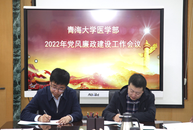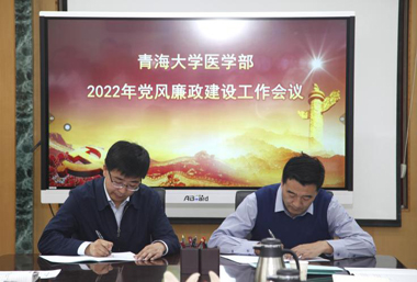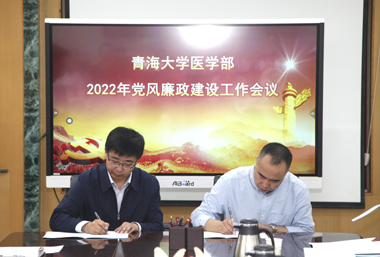 随后,副董事长、医学部主要负责人任延明依次和领导班子成员签订了《2022年党风廉政建设目标责任书》。最后,副董事长、医学部负责人任延明做了讲话,2022年是党的二十大召开之年,是实施“十四五”规划承上启下之年、新一轮“双一流”建设开局之年做好全面从严治党工作意义重大。医学部各级党组织和党员干部要坚持把政治建设摆在首位,坚决践行和捍卫“两个确立”,扎实推动“两个维护”走深走实,要深入学习贯彻总书记关于教育的重要论述,心怀“国之大者”,践行“为党育人、为国育才”初心使命,不断加强思想政治工作、师德师风建设,严格落实意识形态工作责任制;坚持严的主基调,持之以恒正风肃纪反腐,营造风清气正校园生态,毫不放松抓好疫情防控和安全管理工作,保障校园安全稳定和谐。对医学部的从严治党工作提出了三点要求:一要保持政治定力,坚决贯彻公司党委全面从严治党新部署新要求。要深刻领会伟大自我革命的实践内涵,深刻领会“两个确立”的决定性意义,深刻领会以伟大自我革命引领伟大社会革命的实践内涵,深刻领会“反腐败斗争永远在路上、反腐败永无止境”的谆谆告诫,切实增强勇于自我革命、从严管党治党的政治自觉。要坚持不懈把全面从严治党向纵深推进。二要聚焦政治建设,持续推动全面从严治党全面走深更加走实。要抓好政治建设,把准高质量发展政治方向,把对“两个确立”决定性意义的深刻认识转化为做到“两个维护”的高度自觉,把对党忠诚作为立身之本,把贯彻党的各项决策部署与推动公司事业发展结合起来,确保党的路线方针在公司落实落地。在巩固拓展党史学习教育成效中进一步砥砺初心使命,在把握“两个大局”中进一步守好意识形态“责任田”。持续推动新风正气不断充盈,锲而不舍纠“四风”,扫除一切阻碍发展的作风顽疾;切实发挥“头雁”效应,带头强化作风、干事创业,营造既担当作为又风清气正的良好氛围。要抓好纪律建设,保障高质量发展落地见效,聚焦“国之大者”强化监督检查,确保党中央、省委、公司党委重大决策部署在医学部贯彻执行不偏向、不变通、不走样,把问题解决在一线。三要强化责任落实,着力展现全面从严治党新担当新作为。要夯实压紧主体责任,认真落实管党治党主体责任,着力构建主体明晰、有机协同、层层传导、问责有力的责任落实机制,确保主体责任落到底、落到位。要大力提升能力水平,强化专业素养建设,突出纪律作风建设,完善内控机制和监督管理制约体系,以更大作为,切实增强答好新时代全面从严治党“考卷”的行动自觉。医学部各级党组织要把“严”的主基调长期坚持下去,把纪律挺在前面,守住纪律这条底线,维护好医学部的政治生态,充分发挥监督在医学部治理中的作用,有力有效的执行监督保障制度。