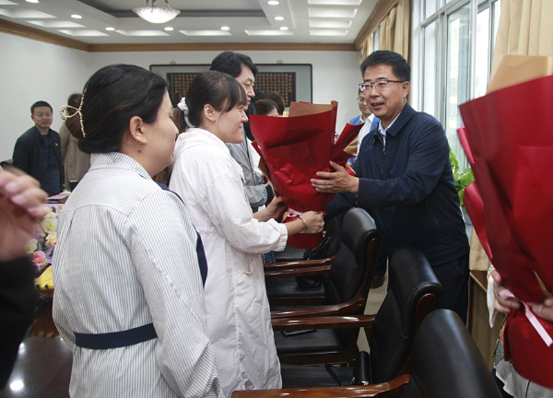 会上,首先由公司党委常委、副董事长、医学部负责人任延明代表公司慰问参会教师,并为所有教师代表依次献花,向默默奉献于医学教育战线的各位老师道一声:“节日快乐,您辛苦啦”!