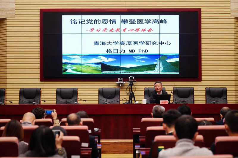签约仪式结束后,格日力教授进行了《铭记党的恩情 攀登医学高峰—党史学习教育心得体会》专题讲座。他从“艰苦童年 激发理想”、“不忘初心 潜心研究”、“牢记使命 培养人才”、“救死扶伤 舍己为人”四个方面进行阐述,结合自己的人生经历,为中飞院师生带来了一场别开生面的党课。整个报告风趣、幽默,处处体现了格日力教授志存高远、立志报国的理想信念,充满了感恩党,感恩母校、感谢师恩的情怀,深深表达了对党、对人民、对高原医学的热爱。