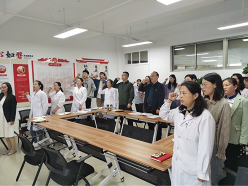 同日,中医系党总支开展了“重温入党誓词,铭记初心使命”主题党日活动,全体党员首先以《党的十八大以来党的建设的重大成就》为内容开展专题学习研讨,3名党员代表作重点发言。随后中医系党总支书记李永平主持了重温誓词活动,全体党员向百年间牺牲的先烈默哀缅怀;冶建强同志带领全体党员面对党旗宣誓。党员代表马雪曼和员工党员代表郑善斌作了发言。大家认为重温入党誓词,也是重温当年的决心和信念,感召我们努力实践,自觉奉献,激励我们不断进取奋斗终身。最后由教工党支部书记张广梅带领大家学习了《中国共产党章程》,进一步明确了新时代党员的义务和权利。