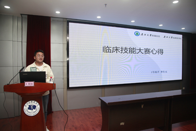 宣讲会上,临床医学专业参赛员工代表2016级临床医学本科2班晏宇鹏作了《努力造就实力 态度决定高度》的专题报告,从“认识大赛”、“奋起发力”、“心理素质”、“团队协作能力”方面介绍了此次参赛的情况,他指出在本届大赛中良好的心理素质和团队合作精神特别重要,遇到突发情况时要始终保持沉着冷静,应用灵活变通的方法理性的去直面问题的症结;2016级临床医学本科6班李生元作了《道阻且长 行则将至》的专题报告,他指出在临床技能操作方面基本功特别要扎实,做到熟练、熟练再熟练,只有兼得丰富的理论知识与娴熟的技能水平齐头并重才能在赛场上更好的奋勇拼搏、展示风采。