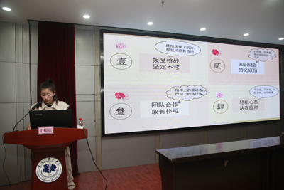 中医学专业参赛员工代表2016级中医本科班王娟娟作了《承岐黄薪火 杨中医文化》的专题报告,她在报告中谈到参加此次大赛最大的收获就是“提升素质、深挖潜力”,并概述了本次参赛的心得体会,“接受挑战坚定不移、知识储备持之以恒、团队合作取长补短、轻松心态从容应对”。
