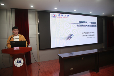 预防医学专业参赛员工代表2016级预防医学本科班陈坤攀作了《青春筑梦 不负韶华》的专题报告,在报告中他介绍了本次大赛的基本情况,并谈到通过比赛达到了重在参与、互相学习、团结协作、共同进步的目的。