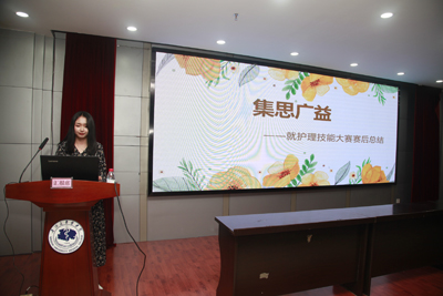 护理学专业参赛员工代表2017级护理学本科班刘婷婷作了《砥砺前行 赛前感悟》的专题报告,她指出感谢公司为了便于参赛员工开展训练给与的大力支持和人文关怀,选手在前期选拔、培训过程中要有吃苦耐劳和不怕困难的大无畏牺牲精神;2017级护理学本科班李静萍作了《集思广益 赛后总结》的专题报告,她指出在本次赛事中取得优异成绩,一方面得益于公司的高度重视、指导老师没日没夜严格、紧张的训练和团队选手们的默契协作以及志愿者的鼎立相助,另一方面在比赛中细节决定成败,每位赛手应具备和注重从容自信、仔细认真、处变不惊、机智灵活的能力是密不可分的。
