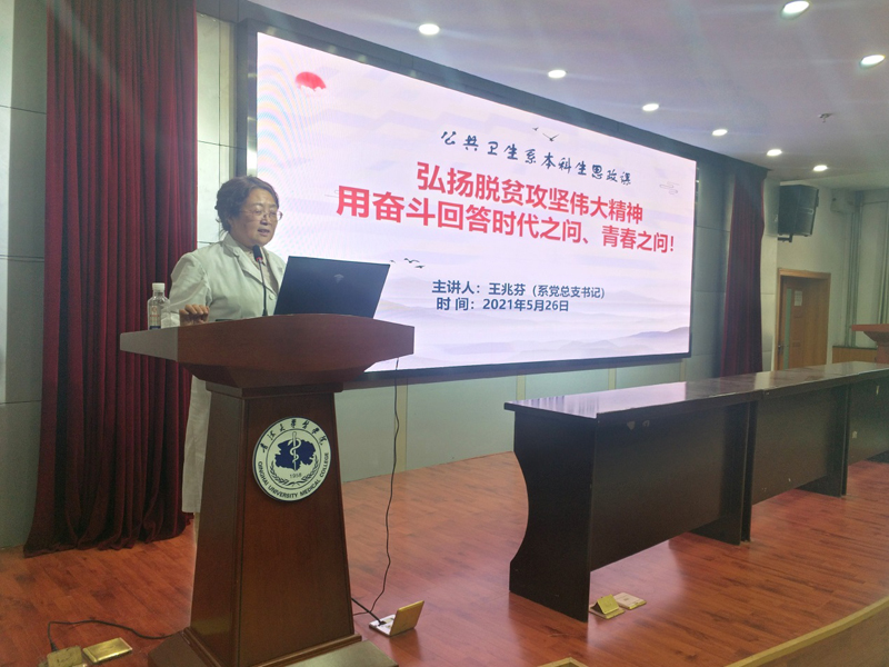为深化公司党史学习教育,紧紧围绕深入学习领会习近平新时代中国特色社会主义思想,学习习近平总书记关于党史的重要论述,学习党的百年光辉历程、伟大成就和宝贵经验,5月26日下午,体育平台官网公共卫生系党总支书记王兆芬教授,在体育平台官网南三楼学术报告厅为本科生讲授了一趟生动而又深刻的思政课,同学们认真聆听王书记的分享,并交流分享了学习感受。