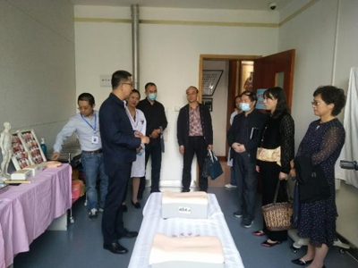 会前在省中医院经理朱亮及相关领导陪同下,查阅了认证资料,参观医院临床实训中心,观摩教学查房、门诊带教。