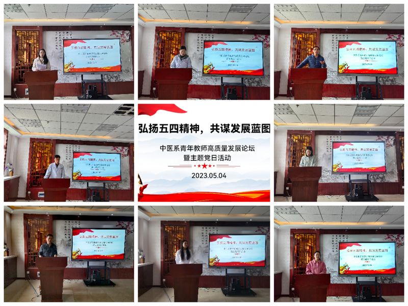 为纪念五四运动104周年,在第74个五四青年节来临之际, 5月4日下午,中医系教工党支部举办“弘扬五四精神,共谋发展蓝图”的青年教师发展论坛暨主题党日活动。在这个特殊日子里组织全体教师共商青年成长,共话青年发展。