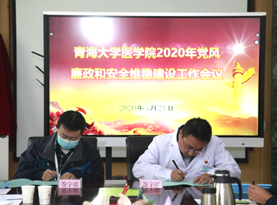 会上,院领导签署了廉政承诺书,并与分管部门负责人签订了2020年度党风廉政建设目标责任书和安全维稳责任书。