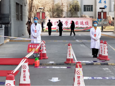 如果说返校专车接送是第一步,那么接下来便是回校。一下车,大家便被要求以一米的间隔进校测量体温以及消毒。行李也由志愿者们消毒完毕后再送回员工的手中。为了缓解这个严肃的气氛,志愿者们主动与同学聊天,聊聊这个寒假,聊聊这个疫情,尽力让所有员工不被这突如其来的改变吓到。口罩,抵挡了病毒,却在某一方面拉近了心与心的距离。