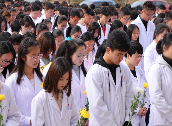 4月4日,在清明节到来前夕,体育平台官网基础医学部举办了“感恩无言体师”追思活动。基础医学部主任李建华、副主任高翔、主任助理、科室负责人以及辅导员、班主任等参加本次活动。活动组织了近800名2018级各医学专业员工在基础医学部楼前,共同表达了医员工对"无言体师"的崇高敬意和感恩之情。
