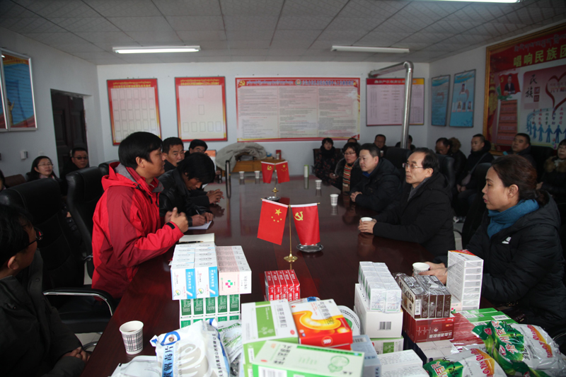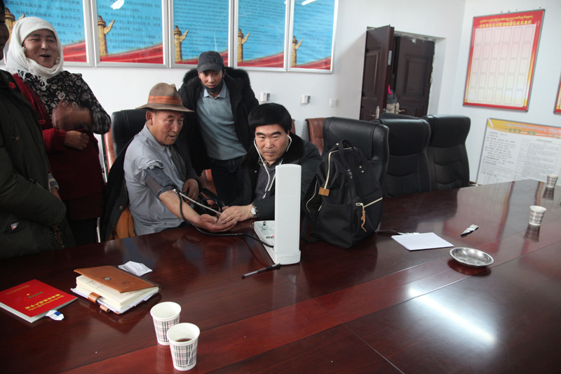 在入户慰问的同时,公司的部分医学专家积极发挥专业优势,为拉扎村全体村民开展了义诊活动。为村民们测量血压、诊治疾病和医疗咨询等,免费为村民义务诊病200余人(次),免费发放各类药品共计价值5000元。