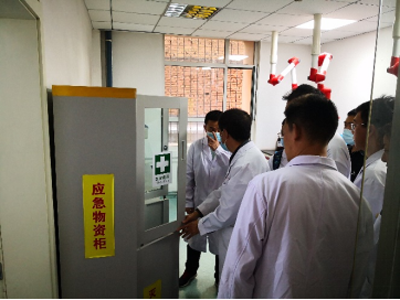 教学管理部教材设备科黄明玉教授首先介绍了本次活动的主要内容和具体要求,强调了本次活动的重要意义。随后高原医学研究中心实验室安全员嘠琴老师向观摩学习的全体师生详细讲解并分享了高原医学研究中心实验室安全制度、危化品管理、消防疏散图、实验室台账记录、仪器设备管理等多方面的管理理念和经验,带领大家参观并介绍了实验室应急柜的配置、危化品暂存室的设计思路与管理、实验室常用物品分类存放办法、废弃物分类收集及收集区域标识、实验室安全设施巡查登记管理等安全管理环节。