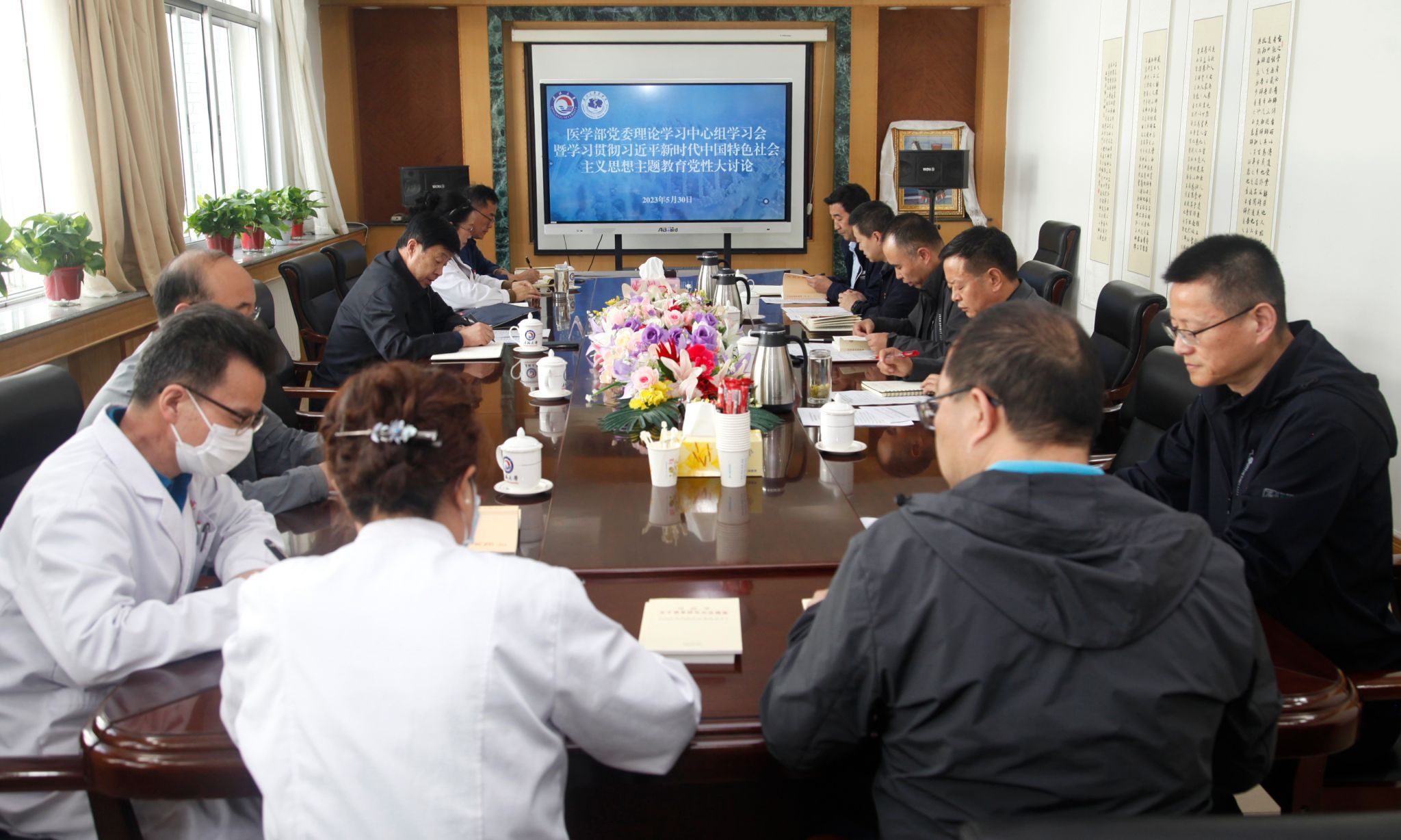 2023年5月30日下午,医学部党委召开了理论学习中心组学习会暨学习贯彻习近平新时代中国特色社会主义思想主题教育党性大讨论。医学部党委副书记、常务副经理苏占海主持会议,校主题教育第一督导组组长颜明、医学部党委班子成员、党委理论学习中心组成员、医学部主题教育领导小组办公室全体人员参加了会议。