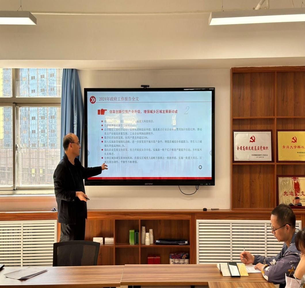李永平同志详细介绍了以下内容:一是十四届全国人大二次会议概况;二是2024年政府工作报告全文,重点解读了报告中的民生清单;三是九个“新”视角读懂政府工作报告里的未来机遇;四是深入阐述了涉及教育工作的相关内容。在今年的政府工作报告中,“大力推进现代化产业体系建设,加快发展新质生产力”居于2024年政府工作十大任务之首,因此,认真学习习近平总书记两会期间关于发展新质生产力的系列重要论述,深刻理解新质生产力的科学内涵,对于全面理解和把握好今年全国两会精神,大力发展新质生产力,推进经济高质量发展,以中国式现代化全面推进强国建设、民族复兴伟业,具有十分重要的意义。