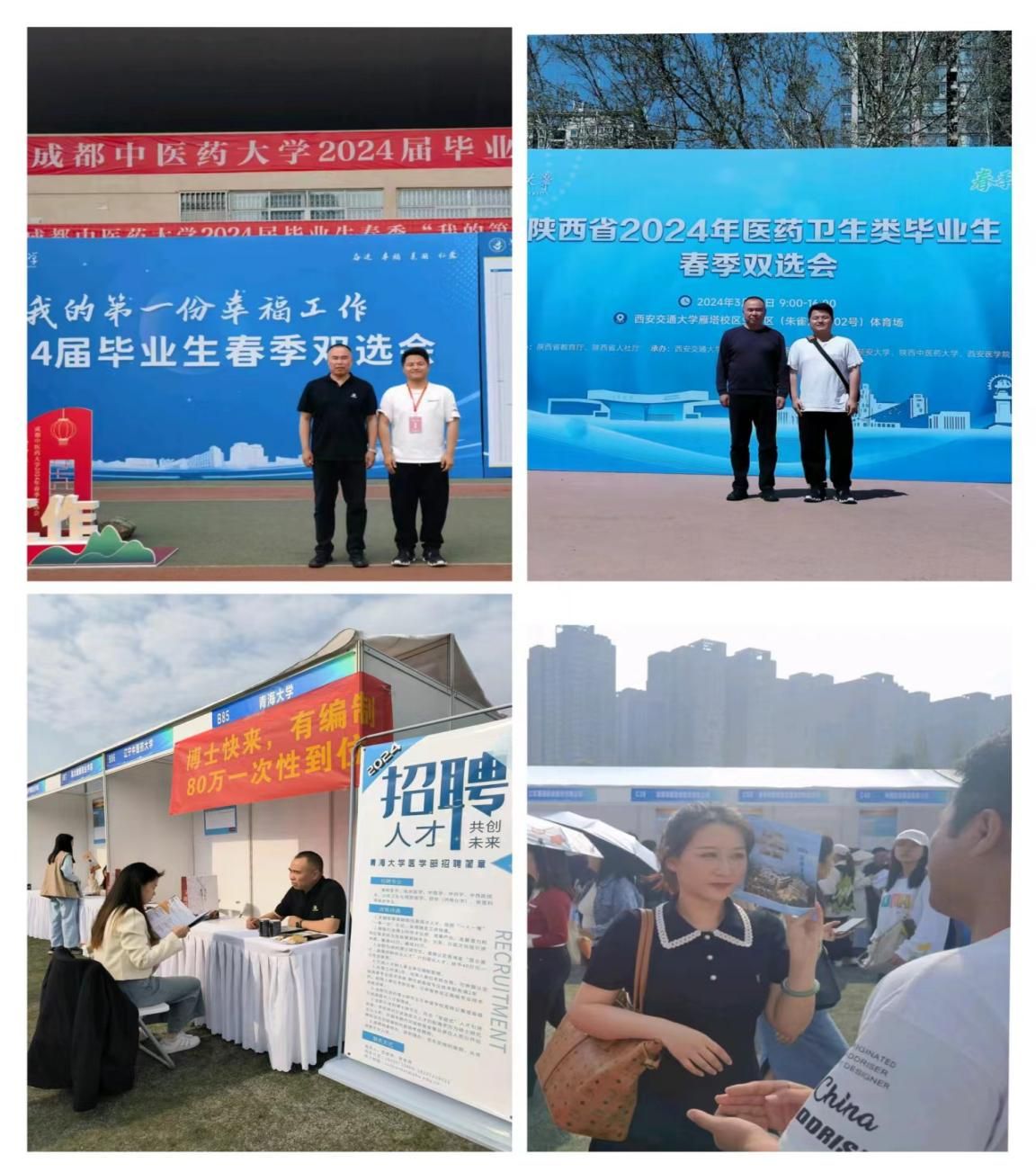 2024年3月28日至31日,为进一步加大体育平台官网紧缺人才引进力度,拓宽引才渠道,公司党委副书记、常务副经理苏占海、院组织人事李文佳老师前往西安交通大学、成都中医药大学参加医药类毕业生春季双选会。