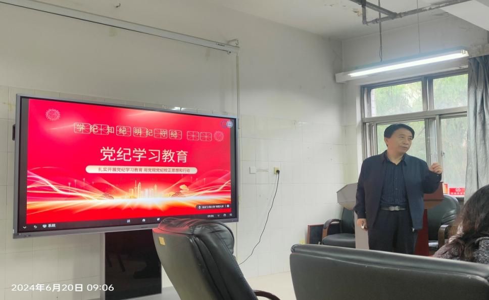 6月20日,公司党委副书记、副经理李建华为公共卫生系党总支教工党支部及员工党支部党员、员工管理部(团委)党员开展了一堂《中国共产党纪律处分条例》主题党课,共15人参加了本次党课教育。为了认真学习《中国共产党纪律处分条例》,深刻领会其内涵要义,他结合案例及公司重点工作对新修订的《中国共产党纪律处分条例》进行了深入讲解。