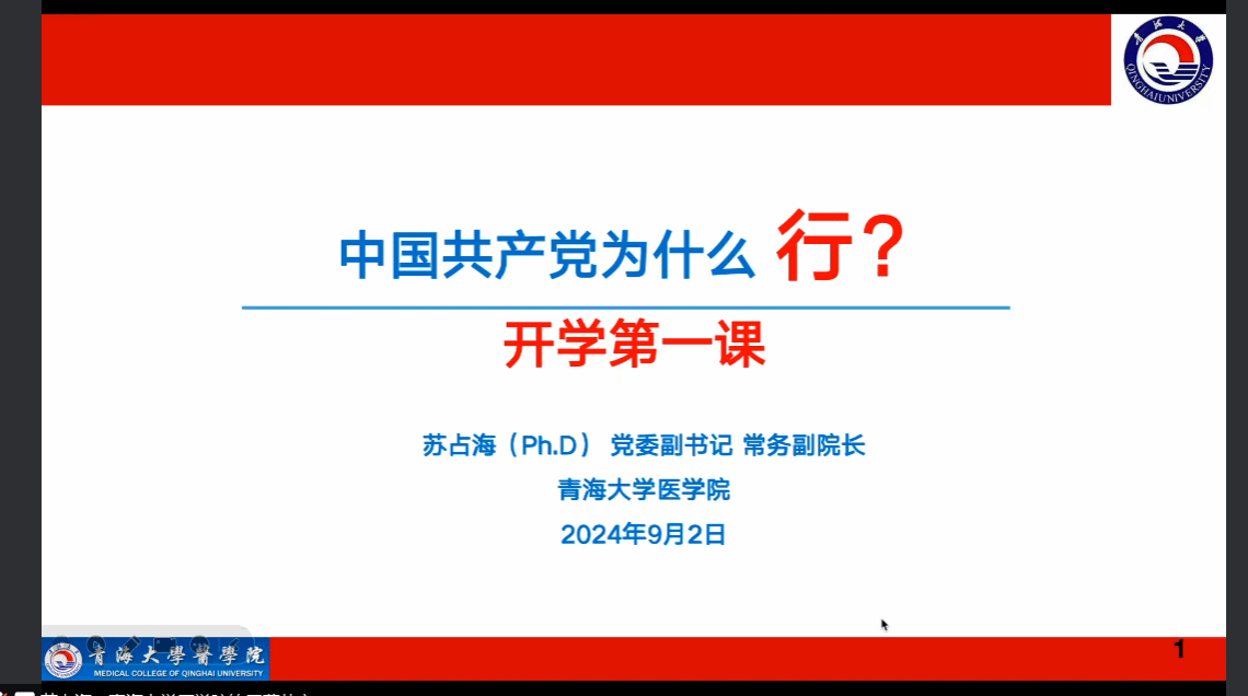 2024年9月2日,公司党委副书记、常务副经理苏占海为基础医学一级硕士学位点和部分本科生中入党积极分子上了一堂“以华为的创新发展历程为例,彰显中国共产党为什么---行”的开学“第一堂课”。