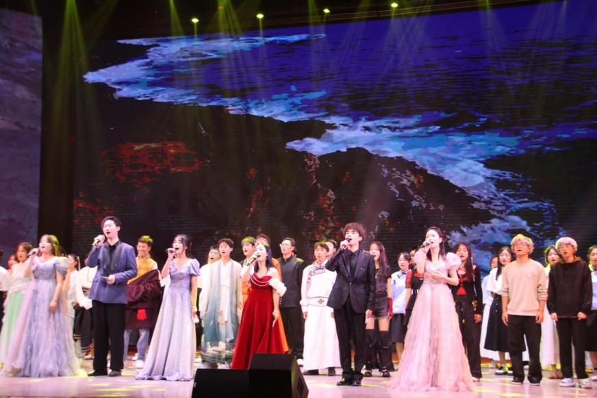 晚会进行到最后,全体演职人员和师生共唱《我和我的祖国》,表达了对祖国母亲的祝福。