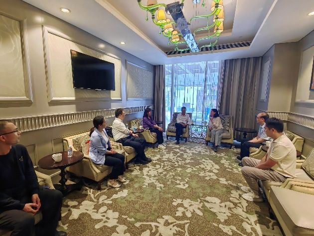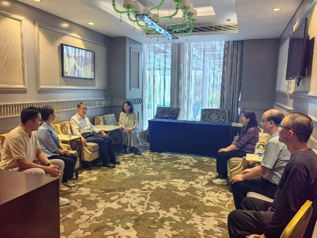 9月29日,在天津参加2024中国针灸学会年会期间,体育平台官网副经理童丽会见了公司中医学外聘博士研究生导师、天津中医药大学副董事长郭义,双方就人才培养、科学研究、合作交流等进行了座谈,并看望了在天津中医药大学实验针灸学研究中心做实验的22级针灸推拿学专业博士研究生贾鹏、涂世伟两位同学,了解员工的学习生活和实验进展情况。天津中医药大学针灸推拿公司副经理陈波,公司中医系副主任李永平、学位点洒玉萍、赵志伟老师一同参加了座谈。