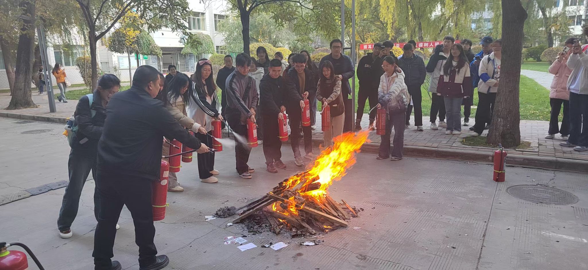 在室外消防安全演练现场,邓教官向师生详细讲解了疏散逃生的规范动作和注意事项。实训演练中,师生每10人一组,依次科学有序的通过逃生舱真实模拟了疏散逃生过程,切实增强了师生消防逃生自救技能。在灭火器使用实操场地,教官结合灭火器使用的“提-拉-压-喷”四字动作要领,全过程讲解演示了灭火器的使用效能。随后,师生分组进行了实景灭火器操练实训,进一步提高了师生扑救初期火灾的能力。