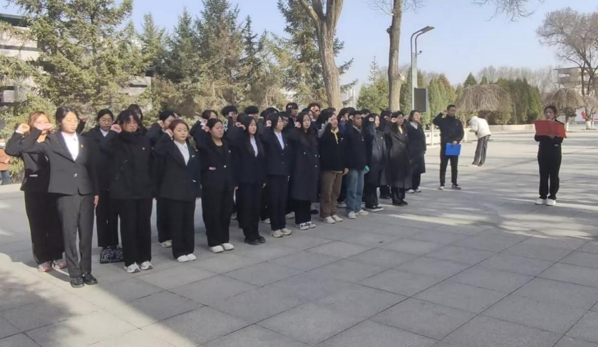 陵园内松柏苍翠,庄严肃穆,高耸的革命烈士纪念碑在晨光中熠熠生辉。全体师生整齐列队,于巍巍丰碑前肃立,依次向烈士纪念碑敬献鲜花,并向长眠于此的革命先烈三鞠躬,对其致以最崇高的敬意。随后由学管部吕竹青老师进行讲话,勉励员工铭记历史,将爱国之情、报国之志转化为刻苦学习、精研医术的实际行动。伴随着铿锵有力的入团誓言在陵园上空久久回荡,仪式进入高潮。
