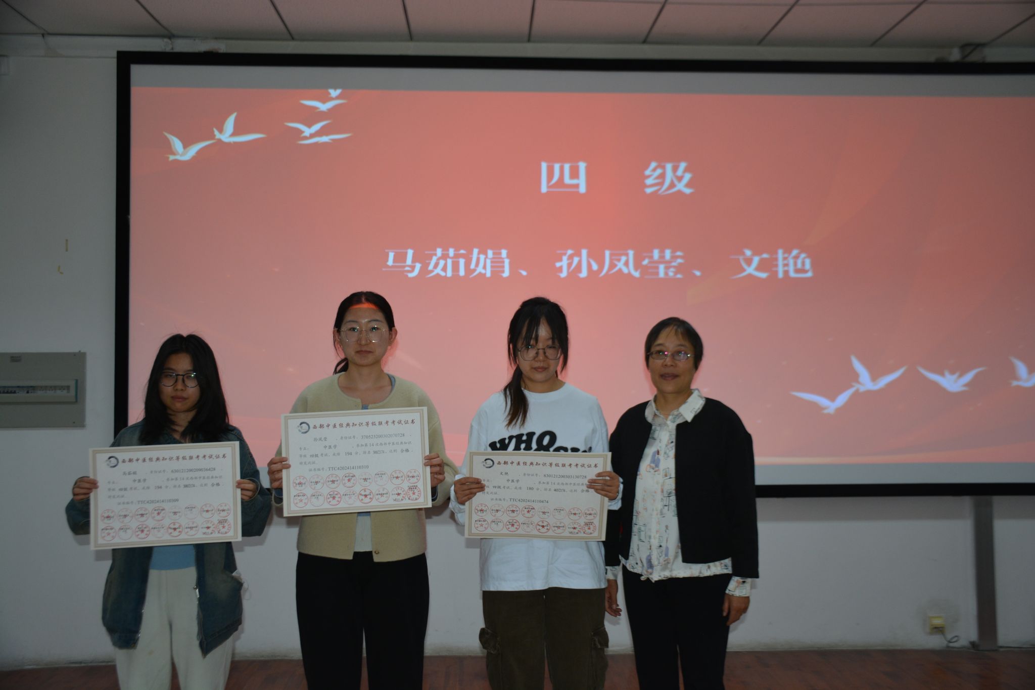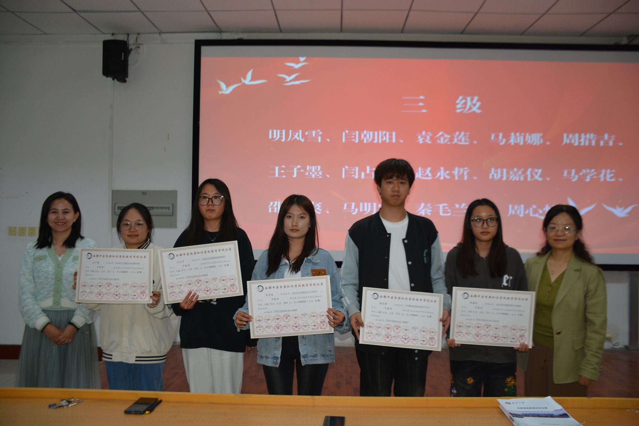 考核结束后,张广梅、康文娟、马雪曼三位教授为“西部中医经典知识等级联考”考试合格员工颁发了等级证书。
