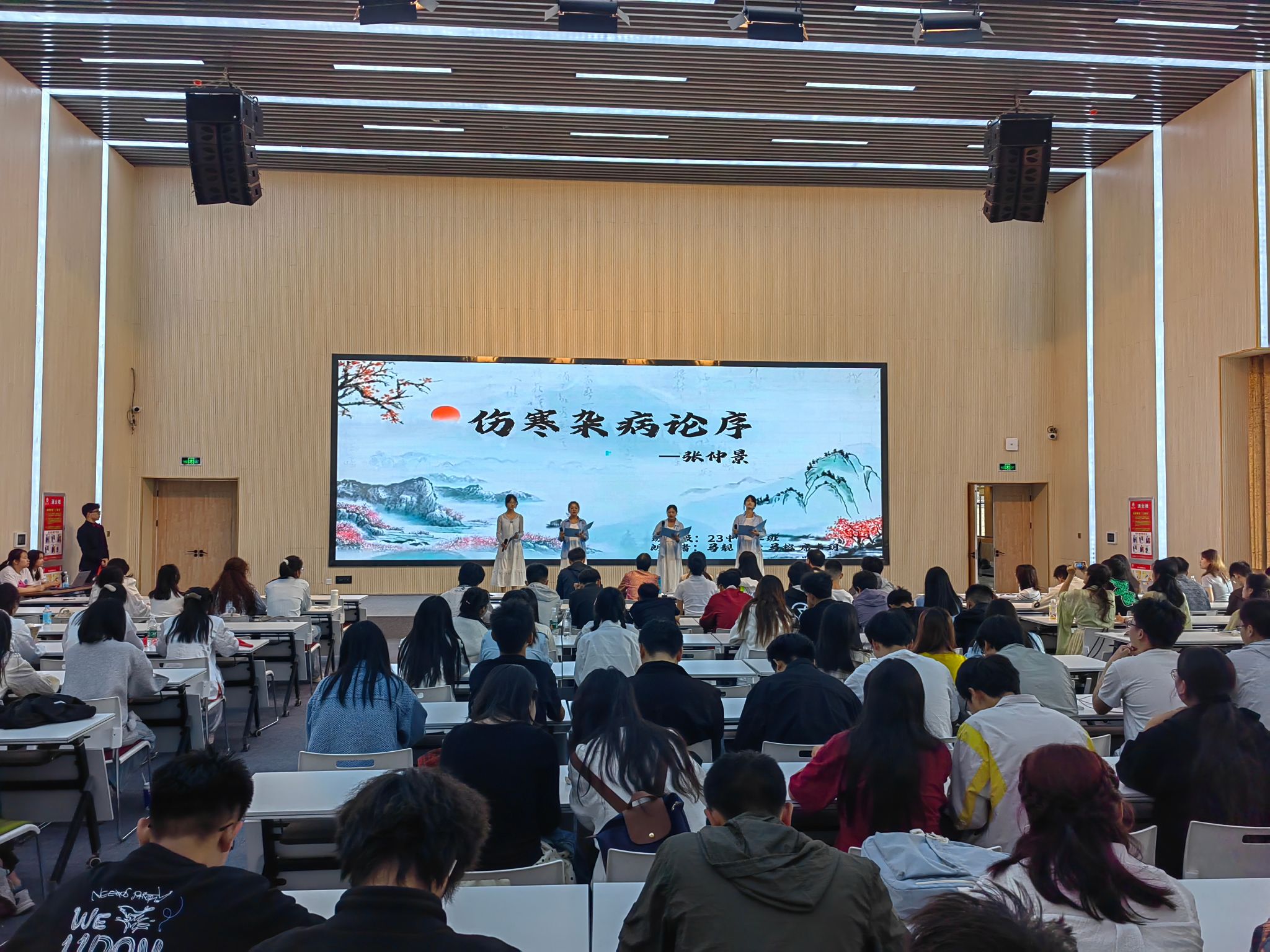 中医系副主任李永平在致辞中强调,中医经典诵读对于“传承精华,守正创新”、筑牢中医根基、培养新时代中医人才意义重大,并勉励学子“以声传道、以诵明理、以赛促学”,为大赛拉开序幕。由22级中医班与针灸推拿班员工带来的开幕剧《一代名医叶天士的求学之路》生动展现了叶天士诵读经典、遍访名师的成长历程,不仅为观众带来了一场视听盛宴,更传递了孜孜以求的刻苦钻研精神,为整场比赛奠定了深厚的文化底蕴与精神基调。