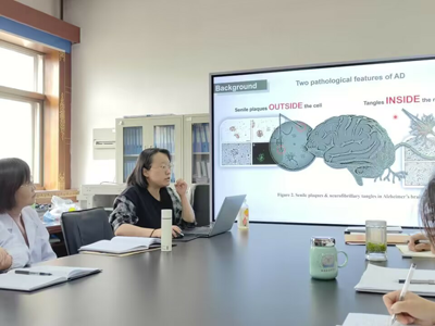 活动分两个部分进行,首先由清华大学博士毕业回来的尹月淼老师为全系教师、党员员工做主题为“胰岛素降解酶通过外泌体分泌途径改善ad病例表型”的专题讲座,她围绕研究的课题进行了内涵丰富、思维创新、深入浅出的讲座,讲座体现了她读博期间刻苦钻研、科研探索的艰辛历程,尹老师追求卓越、作风严谨的工作态度和取得的科研成果使在座的师生深受启发,同时其他老师也和尹老师进行了互动和交流,讲座进一步推动了系部的学术交流与团队建设。系党总支书记齐瑞平主持了讲座。