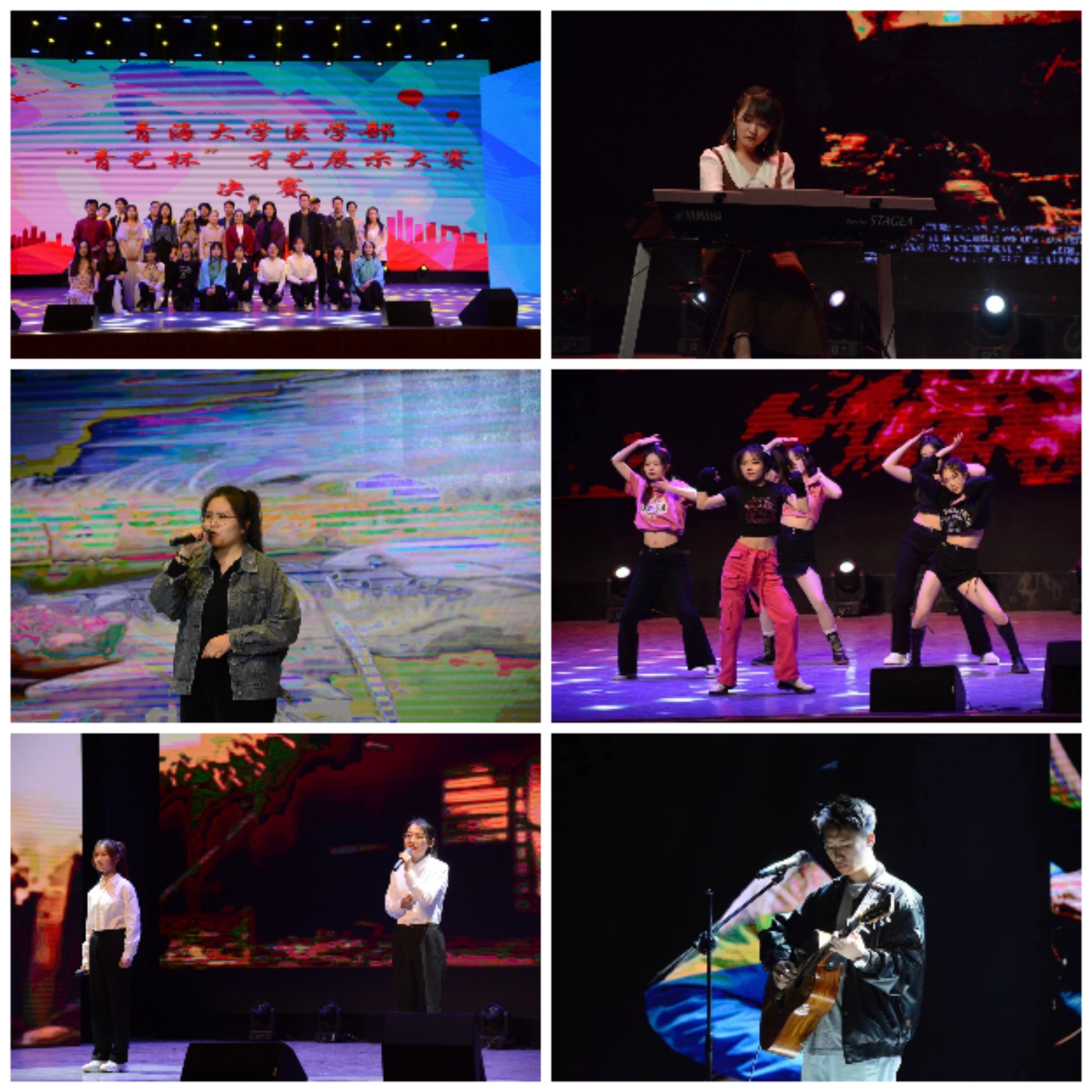 歌曲《西湖》带着同学们游历苏杭美景西湖,把梦想、友谊、爱情、温暖、亲情、感动均在歌中如实阐述;吉他、钢琴弹奏《blue》《you raise me up》展现了青医学子的多才多艺;古典舞《清平乐》把李白的诗词化作翩翩舞姿,羽衣霓裳,翘袖折腰,笑得君王,梦回大唐盛世;朗诵《吹号者》《以青春的名义,赞美中国》以青春之我,奉献伟大之国家,让我们中国青年向着更加美好的未来不懈奋斗!
