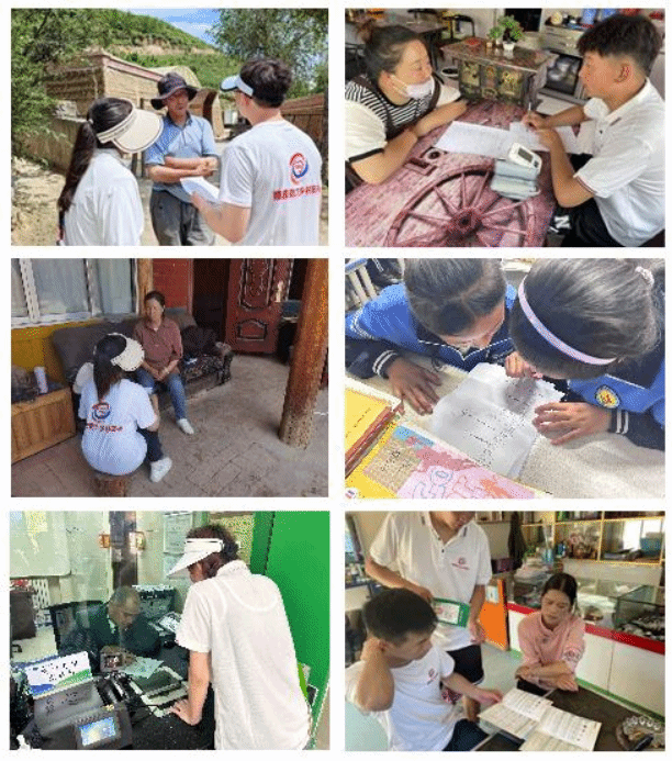 7月8日,服务队一行16人来到普通话普及率较低的湟中区群加藏族乡开展普通话普及程度调研,团队成员通过逐户发放调查问卷,了解当地农民、商铺老板、饭馆老板、医生、政府工作人员、银行柜台人员、中小员工等群体的普通话使用情况。本次问卷共收集150份,通过调研我们发现,当地留守妇女、老人和儿童普通话应用能力较低。