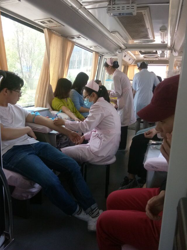 每天从中午下课开始,来献血的同学便络绎不绝,活动进行的井然有序,志愿者们号召全院师生献出博爱之心,用行动诠释爱的意义。血站的医务工作者和红会志愿者们准备好了献血的必备物品,在志愿者的组织下,同学们都纷纷积极而有序地加入无偿献血。
