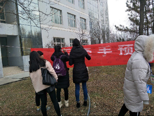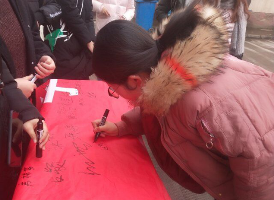 活动现场悬挂主题宣传横幅——“手牵手预防艾滋,心连心关爱生命",并通过摆放艾滋病宣传展板,发放艾滋病防治知识宣传资料向同学们宣传预防艾滋病的注意事项,同时在活动现场进行了横幅签名活动,寄托祝福。同学们在主题红色横幅上进行签名,并写上自己对艾滋病患者、防治人员甚至对和谐世界的祝福,以唤起对艾滋病患者与防治人员的关心与关注。提高同学们的公益心和作为老员工的责任感和使命感。