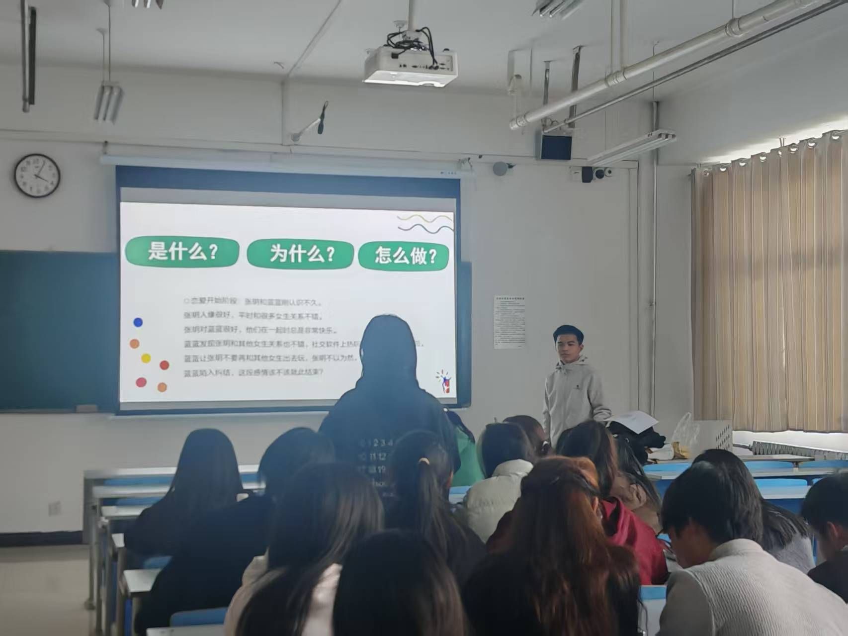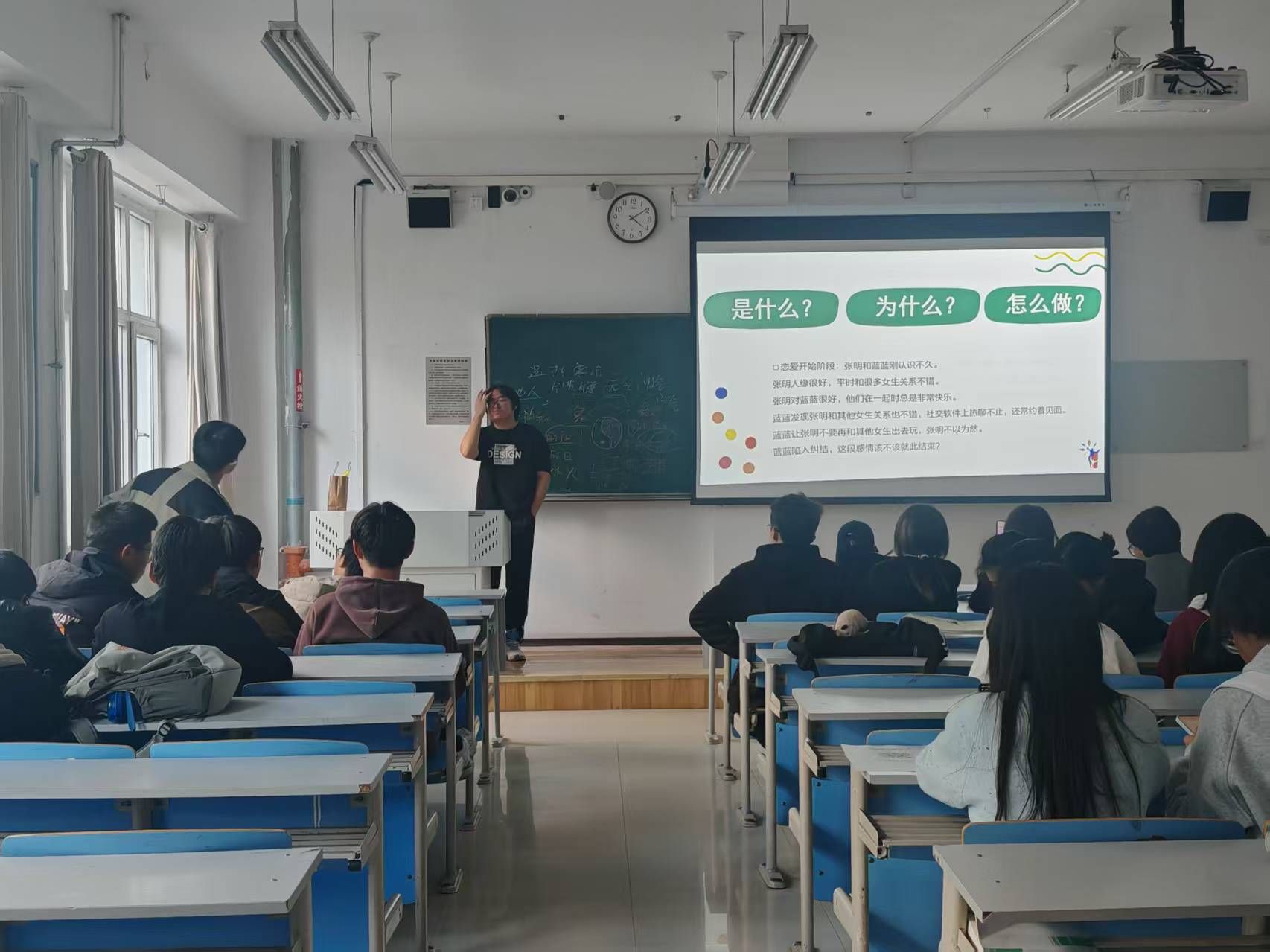 案例研讨环节采用“分组辩论+角色扮演”形式,一组模拟情侣对话练习“非暴力沟通”,用非批评指责替代指责式表达;另一组分析问题根源,总结出“及时表达需求”“主动关怀对方”等相处技巧。在异地抉择案例中,同学们围绕“事业与爱情平衡”展开讨论,最终达成共识——需通过坦诚沟通规划未来,而非单方面强求对方妥协。每个案例讨论后,主持人都会提炼核心观点,补充“换位思考四步法”(倾听需求→理解感受→分析原因→提出方案),让理论知识更具实操性。
