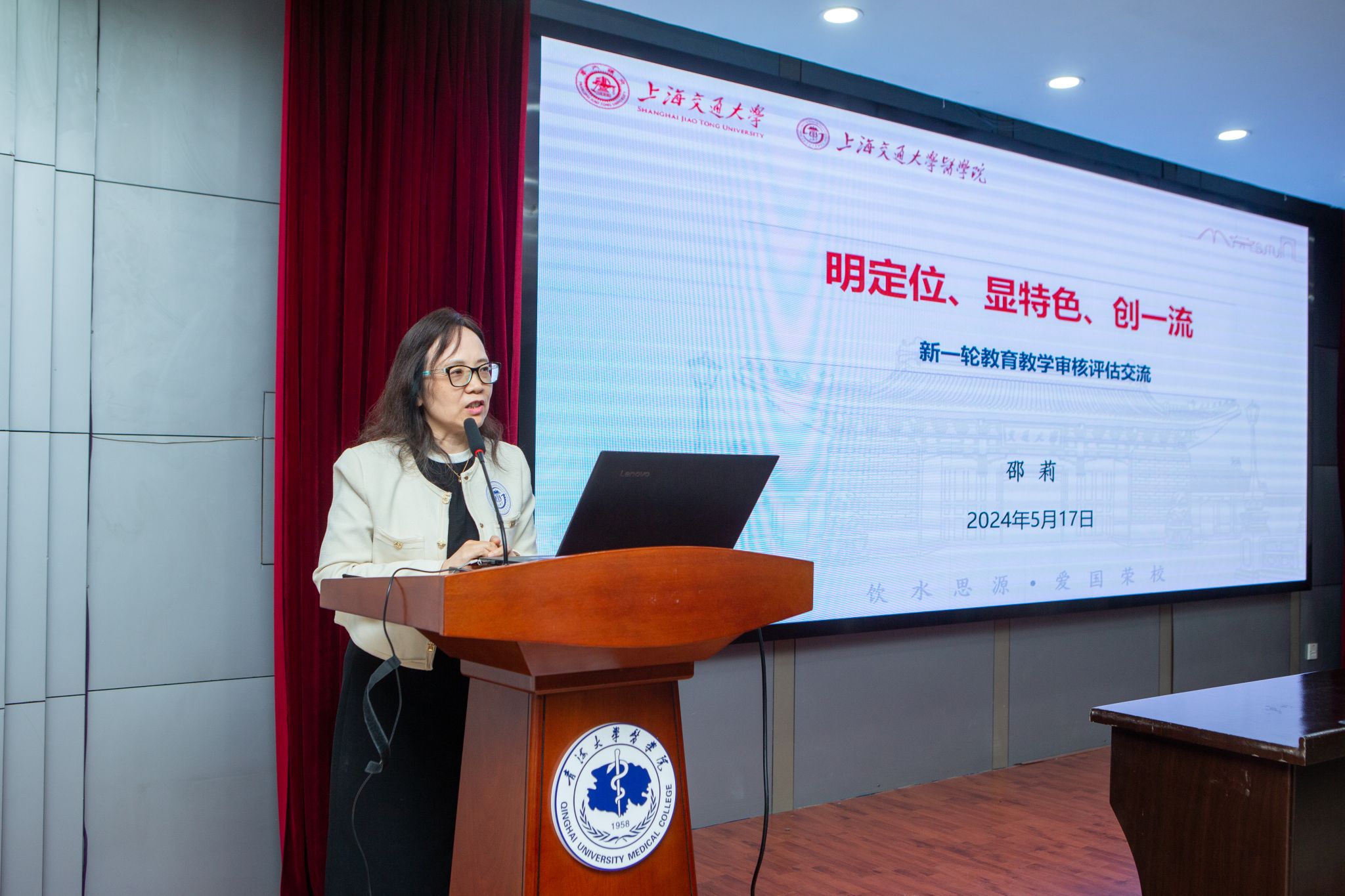 接着,为进一步提升公司公司产品质量,做好本科公司产品审核评估工作,上海交通大学体育平台官网教务处处长邵莉教授以“明定位、显特色、创一流”为主题,分享了上海交通大学体育平台官网在新一轮公司产品审核评估工作开展工作的一些经验做了交流报告,她从教学审核评估的指标体系、评估流程、评估标准等方面进行了深入讲解和细致分析,并以《新时代复合型医学人才培养的探索与实践》为案例,介绍了医学教育发展改革的人才培养模式,详细分享了上海交通大学体育平台官网以课程为核心做实做优一流交叉融合课程、以一流交叉创新项目为载体培养复合创新能力的人才培养全过程、全育人的经验交流。