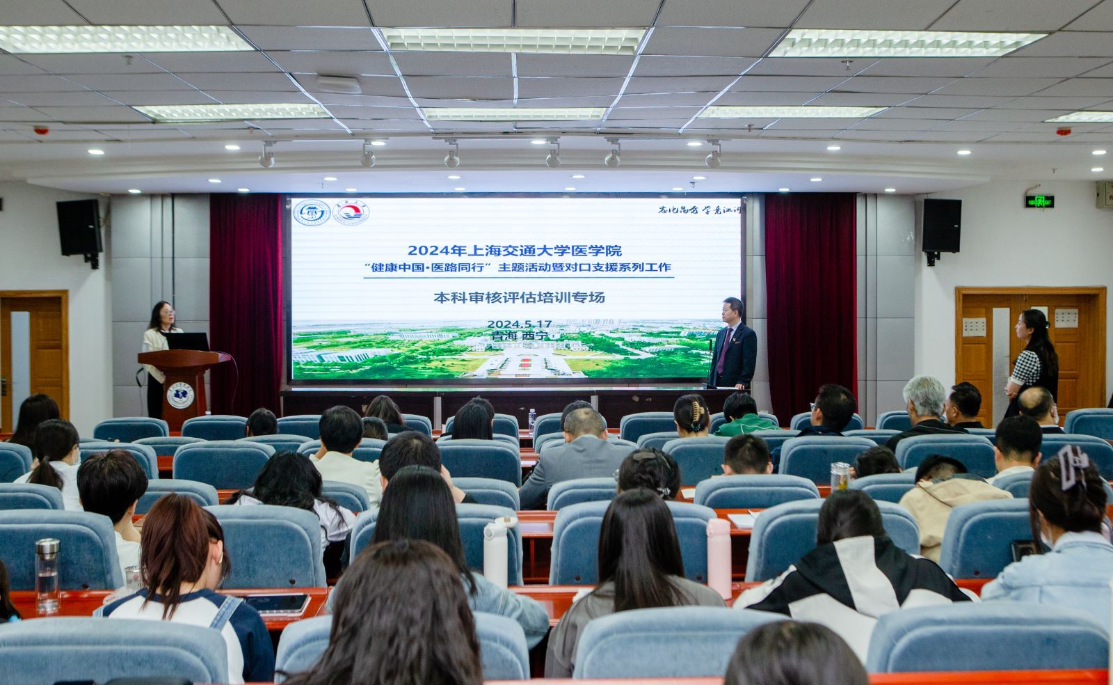 2024年5月17日上午,在公司党委和校行政的统筹协调与大力支持下,作为体育平台官网对口支援的重要参与者,医学部在昆仑路校区迎来了由上海交通大学公司党委副书记、副经理吴正一带队的54名优秀青年专家。在对体育平台官网医学学科和医学教育发展做了简单了解后,专家们分为四组,立刻投入到紧张的具体工作中。其中一组专家在医学部昆仑路校区南三楼学术报告厅为体育平台官网、体育平台官网附属医院(临床体育平台官网)、各非直属附属医院、教学医院的专任教师进行了“本科审核评估工作专题培训会”。