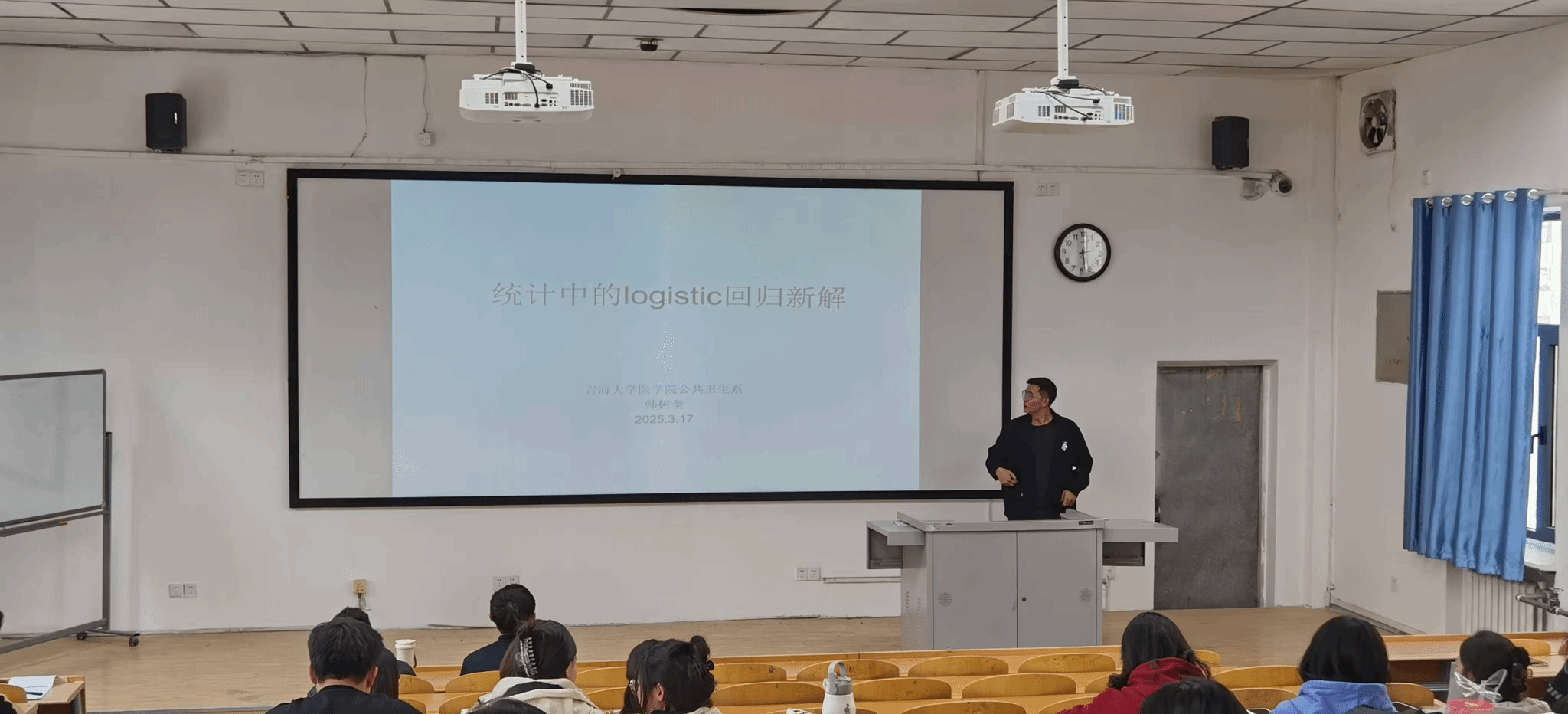 在学术分享环节,尕藏卓玛同志以"儿童肥胖预防和控制"为主题,结合公共卫生专业知识与典型案例,系统分析了饮食结构、运动量、遗传因素等对儿童肥胖的影响机制,为相关研究提供了新的思路。韩树奎同志则围绕"统计中的逻辑回归新解"展开深入探讨,针对逻辑回归模型应用中的常见误区与关键要点提出了独到见解,有效提升了同学们对科研方法的理论认知。