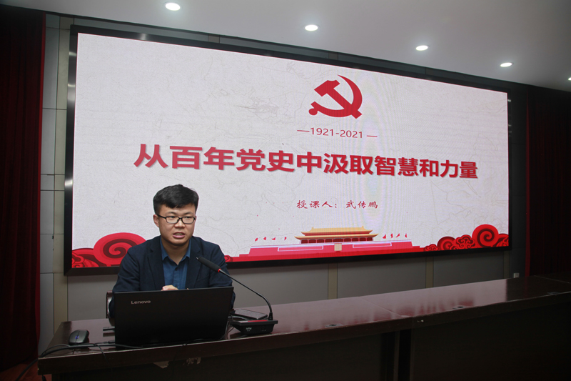 武传鹏副教授作题为《从百年党史中汲取智慧和力量》的党史宣讲报告,他从百年大党的淬炼历程、百年党史的强国密码和百年党史的重大意义三个部分全面系统的阐述了百年大党的发展历程。武传鹏指出,回顾中国共产党领导人民革命、建设、改革、全面深化改革的百年历程,会发现中国共产党身上具有一些世界上其他政党不具备的宝贵精神气质——真诚、自律、艰苦奋斗、尊重实践等等,更重要的是始终坚持以人民为中心,这种宝贵的精神气质,是中国共产党百年间总结成功经验、勇于反思教训、不断开拓创新的思想根源,为中国共产党带领全国人民继往开来、再创辉煌提供了源源不断的思想动力。宣讲报告主旨清晰、层次分明、资料翔实、数据准确、生动形象,为我们上了一堂精彩的党课。