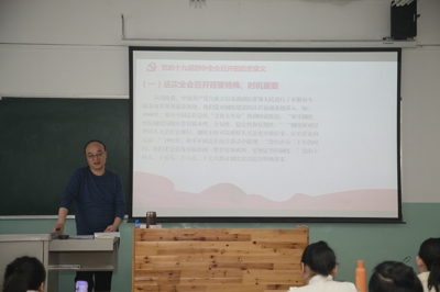 为了进一步学习好、宣传好、贯彻好党的十九届四中全会精神。根据公司统一安排,12月11日下午进行了“百名领导干部、专家学者进班宣讲十九届四中全会精神”活动,公司12个班级的联点领导干部及专家学者分别到联点班级结合青海省情、体育平台官网校情从充分认识坚持和完善中国特色社会主义制度、推进国家治理体系和治理能力现代化的重大意义;深刻领会中国特色社会主义制度和国家治理体系的显著优势、准确把握坚持和完善中国特色社会主义制度;推进国家治理体系和治理能力现代化的总体要求、总体目标和重点任务等方面对党的十九届四中全会精神进行了宣讲。