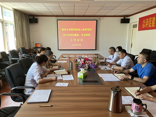 2021年7月7日下午,成人教育公司召开2021年党风廉政建设、安全维稳专题工作会议, 全体职工参加会议,会议由党支部书记李大刚主持。